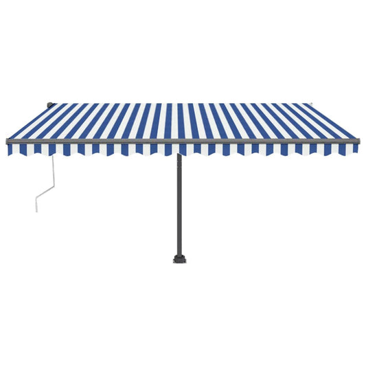 Tenda Retrattile Manuale con Palo 400x350 cm Blu/Bianco