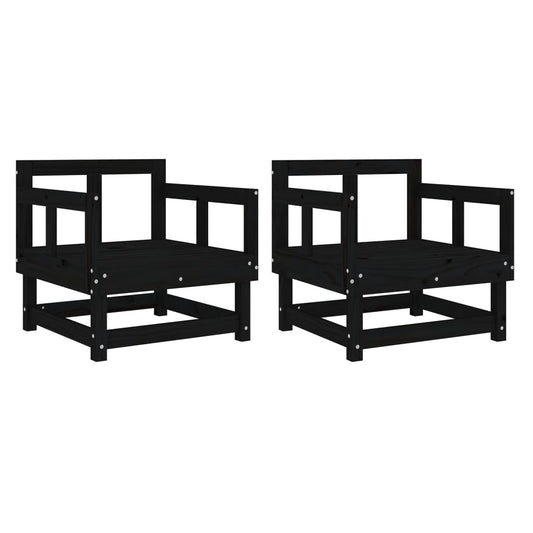 Sedie da Giardino 2 pz Nere in Legno Massello di Pino