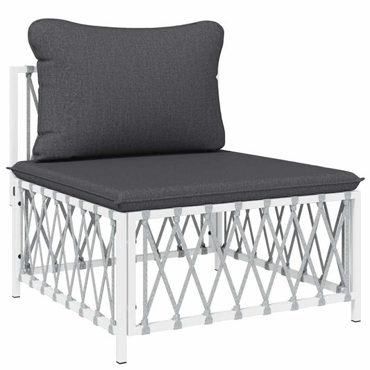 Divano Centrale Giardino con Cuscini Bianco Tessuto Intrecciato