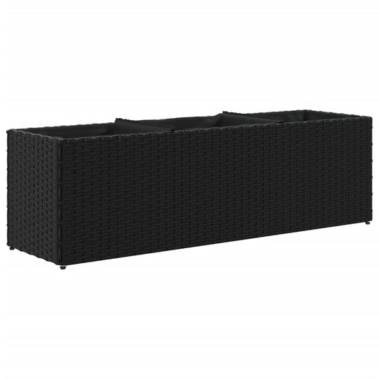 Fioriera con Ruote e 3 Vasi Nera 107x32x38 cm in Polyrattan