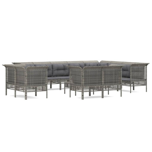 Set Divani da Giardino 13 pz con Cuscini in Polyrattan Grigio