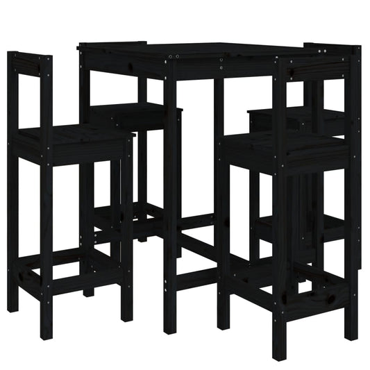 Set Bar da Giardino 5 pz Nero in Legno Massello di Pino