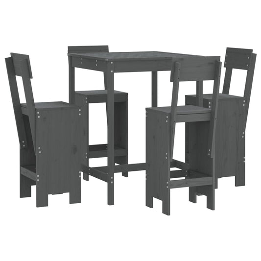 Set Bar da Giardino 5 pz Grigio in Legno Massello di Pino