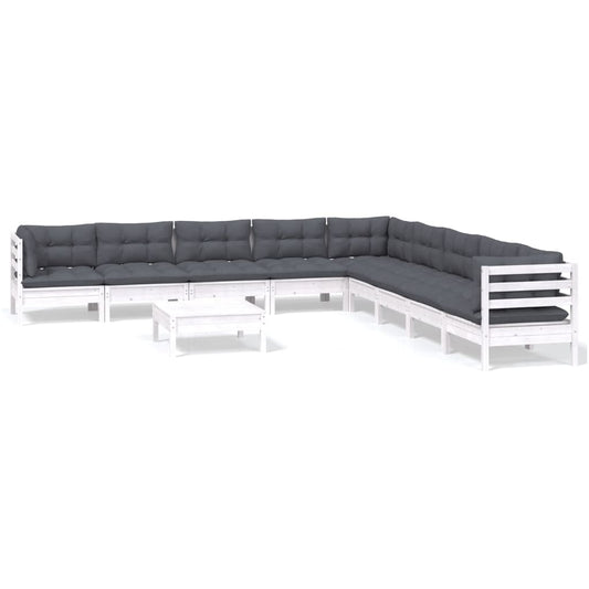 Garden Sofa Set 10 pcs with White Cushions in Pine Wood