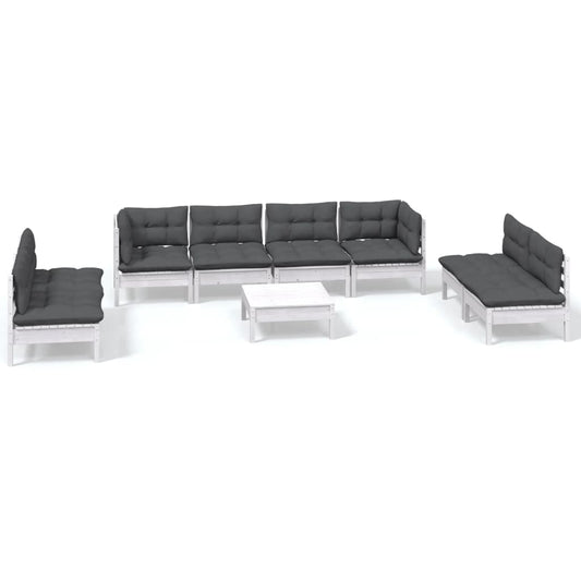 8 pc Garden Sofa Set with White Pine Wood Cushions