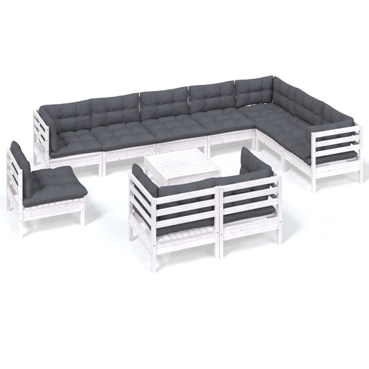 11 pc Garden Sofa Set with White Pine Wood Cushions