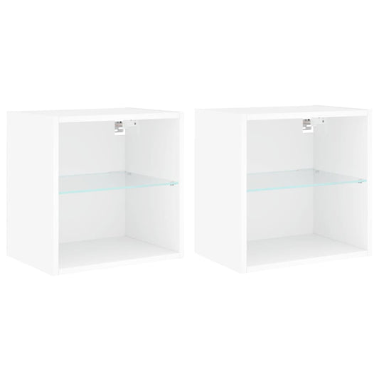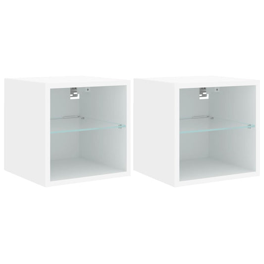 Mobili TV a Parete con Luci LED 2pz Bianchi 30x28,5x30 cm
