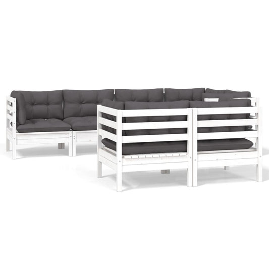 Garden Sofa Set 7 pcs with White Cushions in Pine Wood