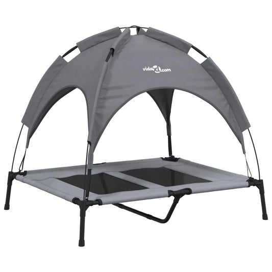 Lettino per Cani con Tetto Tessuto Oxford Antracite e Acciaio