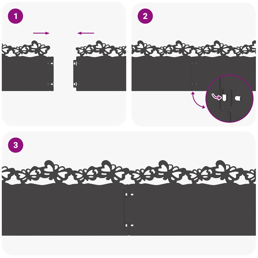 Bordure per prato 20 pcs Nero 103 x 0,05 x 22 cm Acciaio