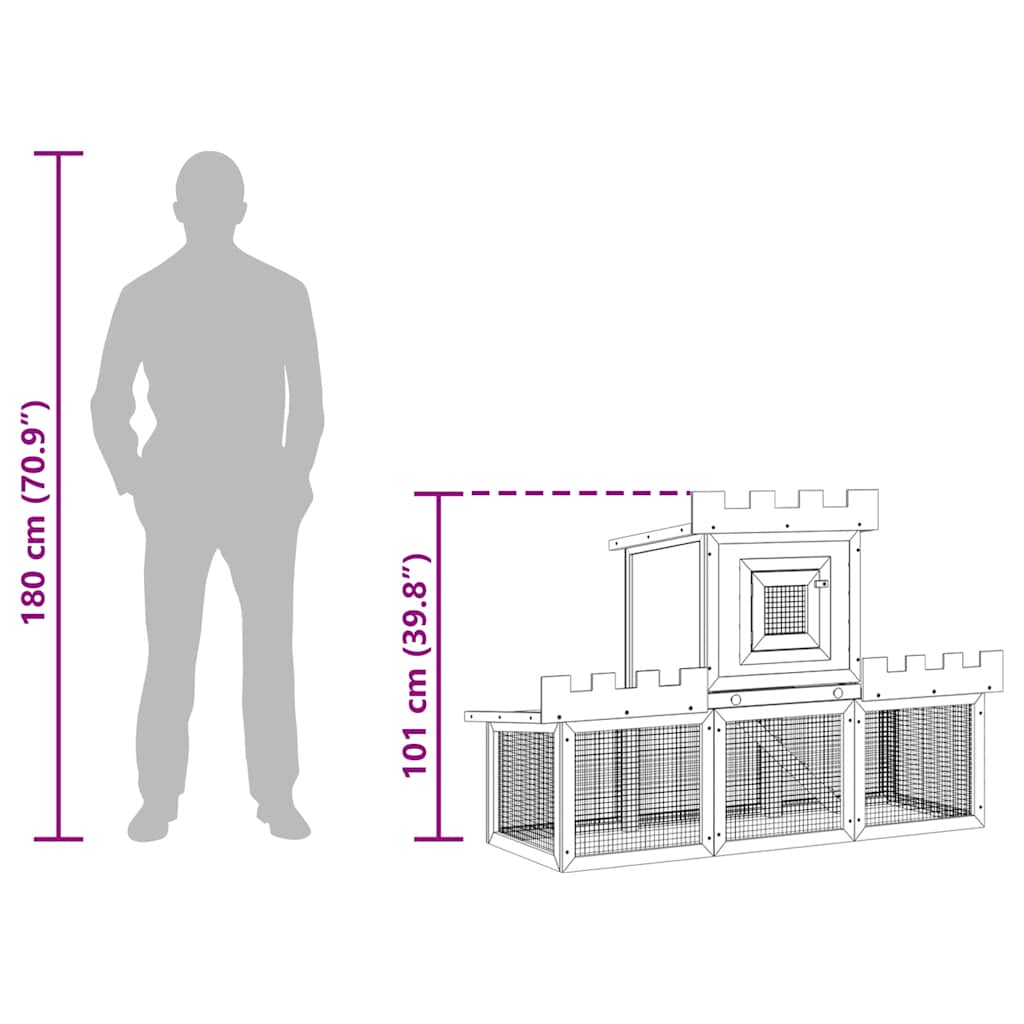 La conigliera è costruita con telaio in legno di pino di alta qualità, che garantisce un uso a lungo termine. La sua accogliente casetta rende la zona notte perfetta per i vostri animali domestici. Una scala facile da salire conduce al piano superiore. Inoltre, un vassoio estraibile facilita la pulizia.