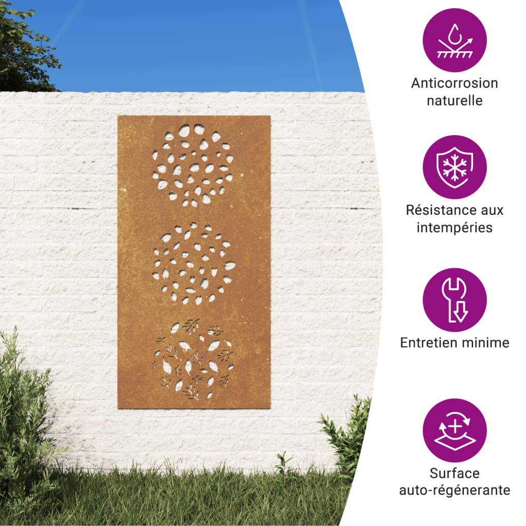 Decorazione Muro da Giardino 105x55 cm Foglia Acciaio Corten