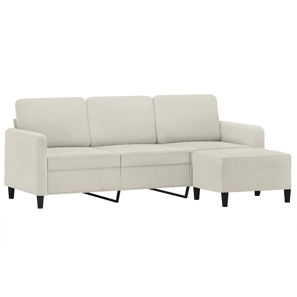 Divano a 3 Posti con Poggiapiedi Crema 180 cm in Velluto