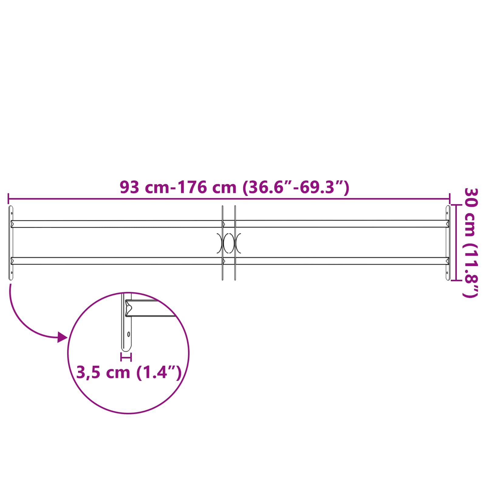 - Dimensioni complessive: 176 x 30 cm (L x A)