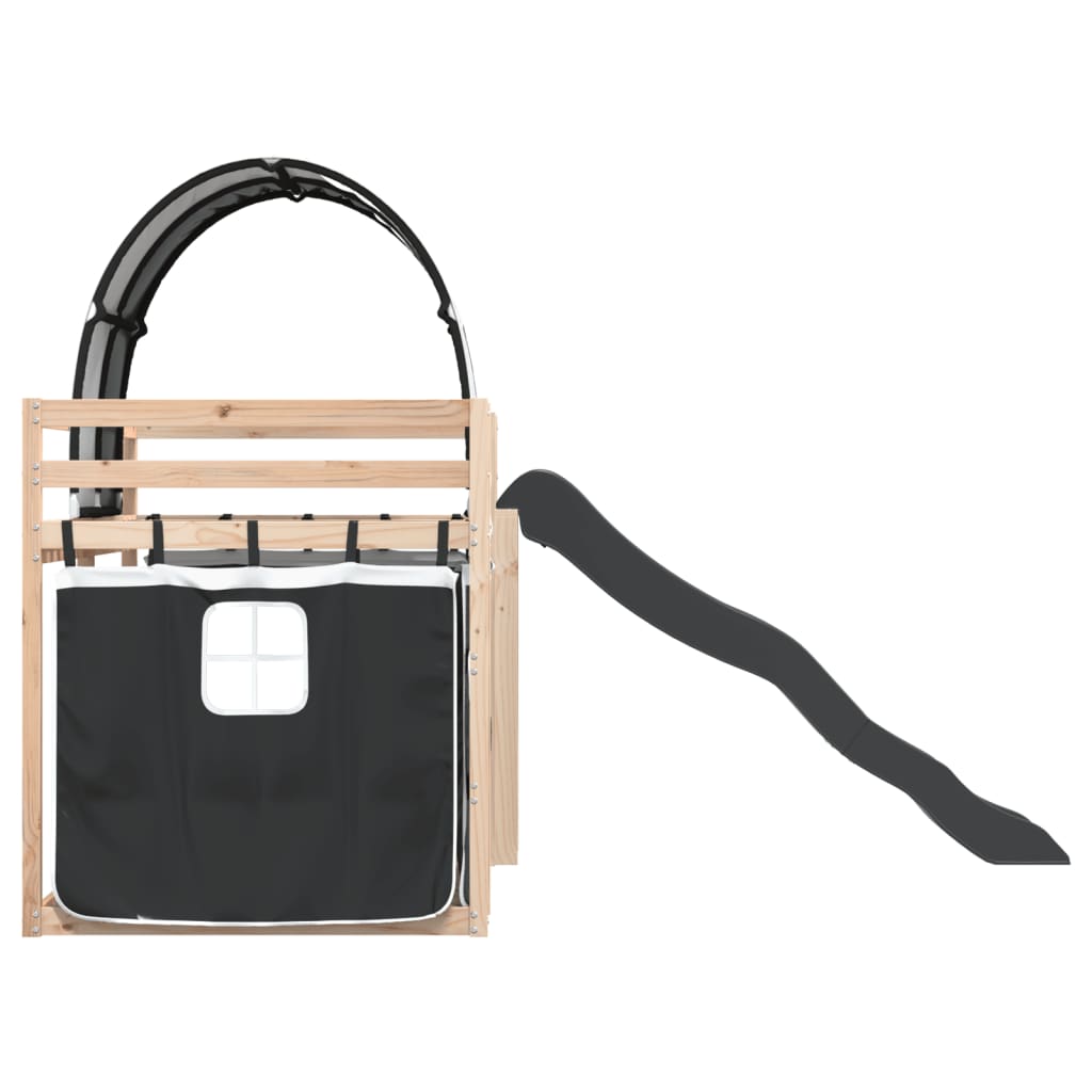 Letto a Castello con Scivolo e Tende Bianco e Nero 80x200 cm
