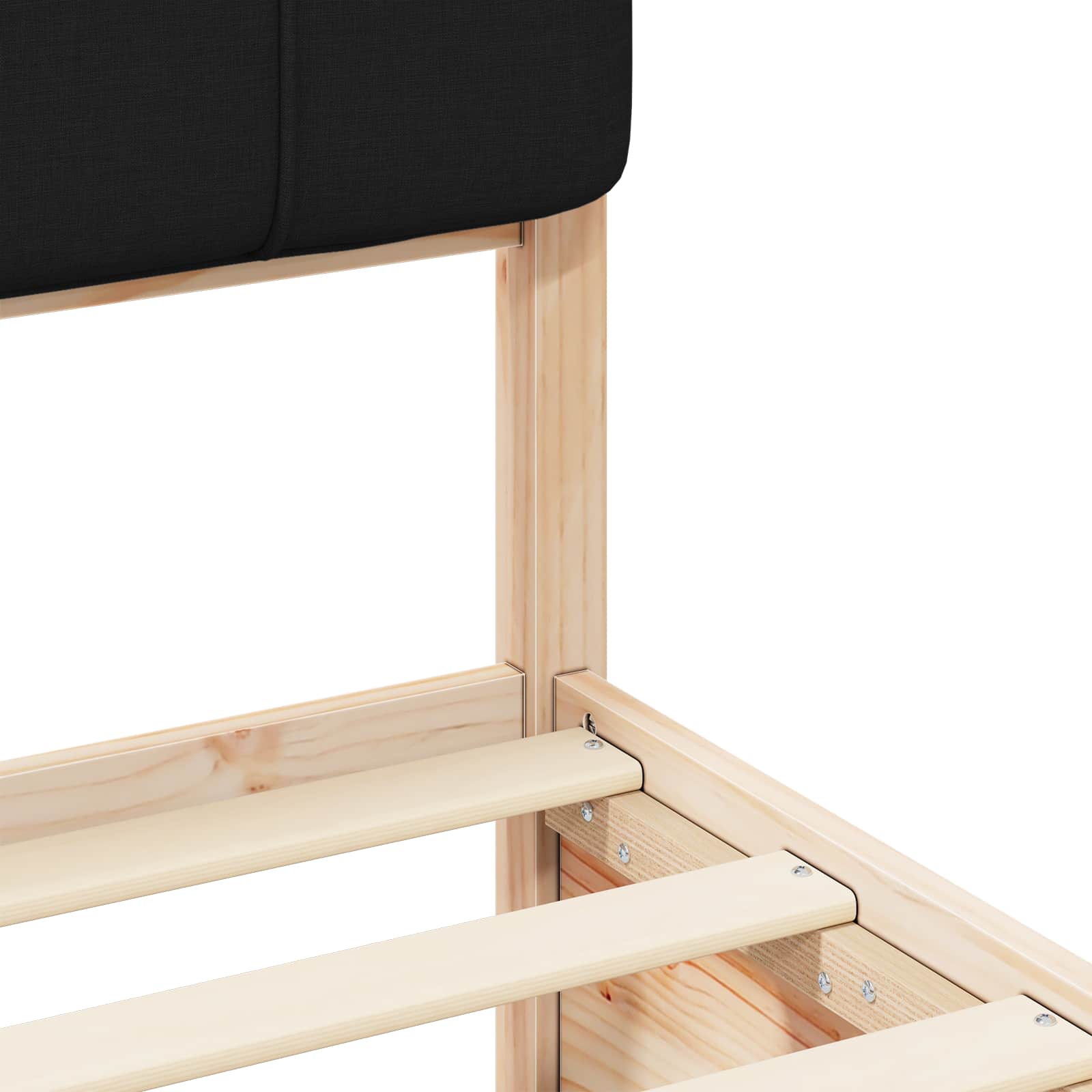 Letto con Testiera Rivestita Nero 120 x 190 cm Pino massello