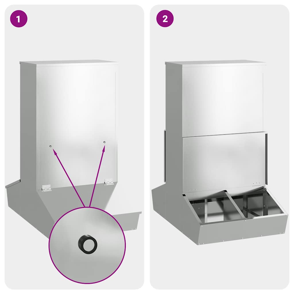 - Struttura in acciaio robusto Questo mangiatore è progettato per durare anche in condizioni difficili, così i tuoi maiali hanno sempre una fonte di cibo sicura.