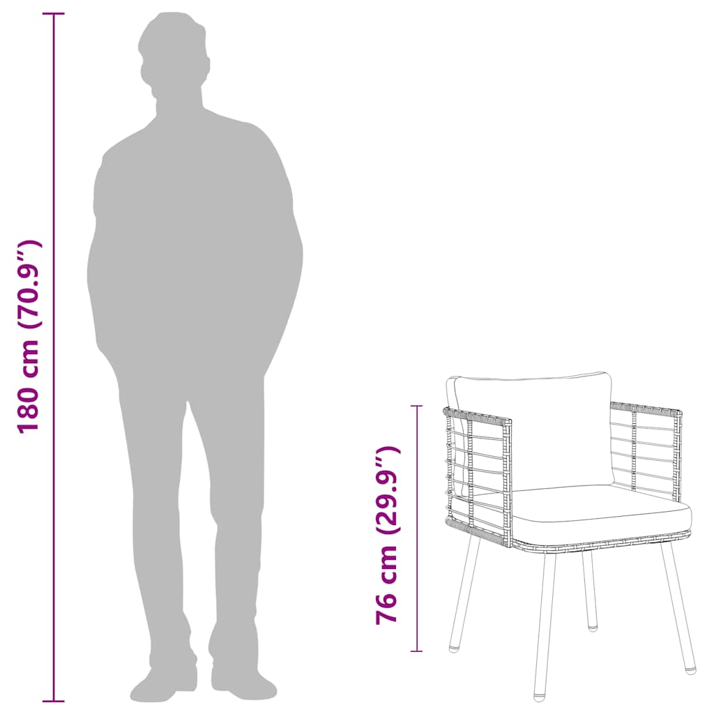 - Materiale: rattan PE, acciaio verniciato a polvere, acciaio zincato