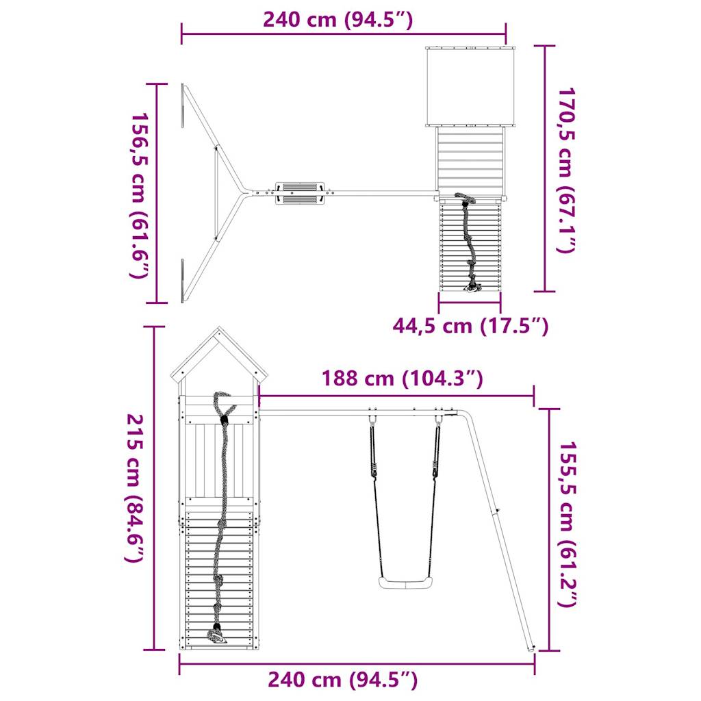 - Materiale della torre di gioco: Legno massello di douglas (non trattato)