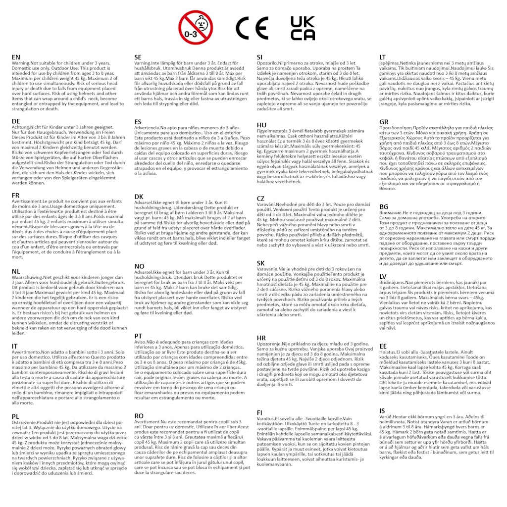 • Non adatta per bambini di età inferiore ai 3 anni