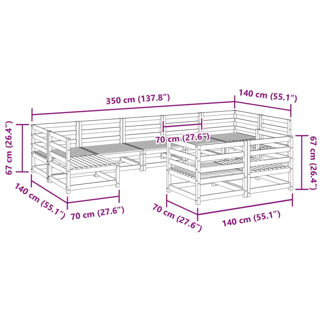 Set Divani da Giardino 9 pz in Legno Massello di Pino