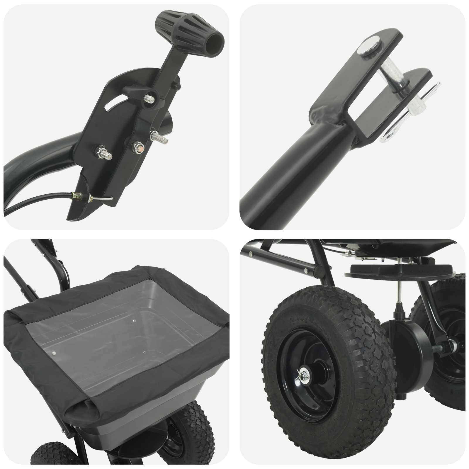 - Design funzionale: Perfetto per giardini e prati, permette di distribuire semi e fertilizzanti in modo uniforme, semplificando la manutenzione e migliorando l'aspetto e la salute delle piante.