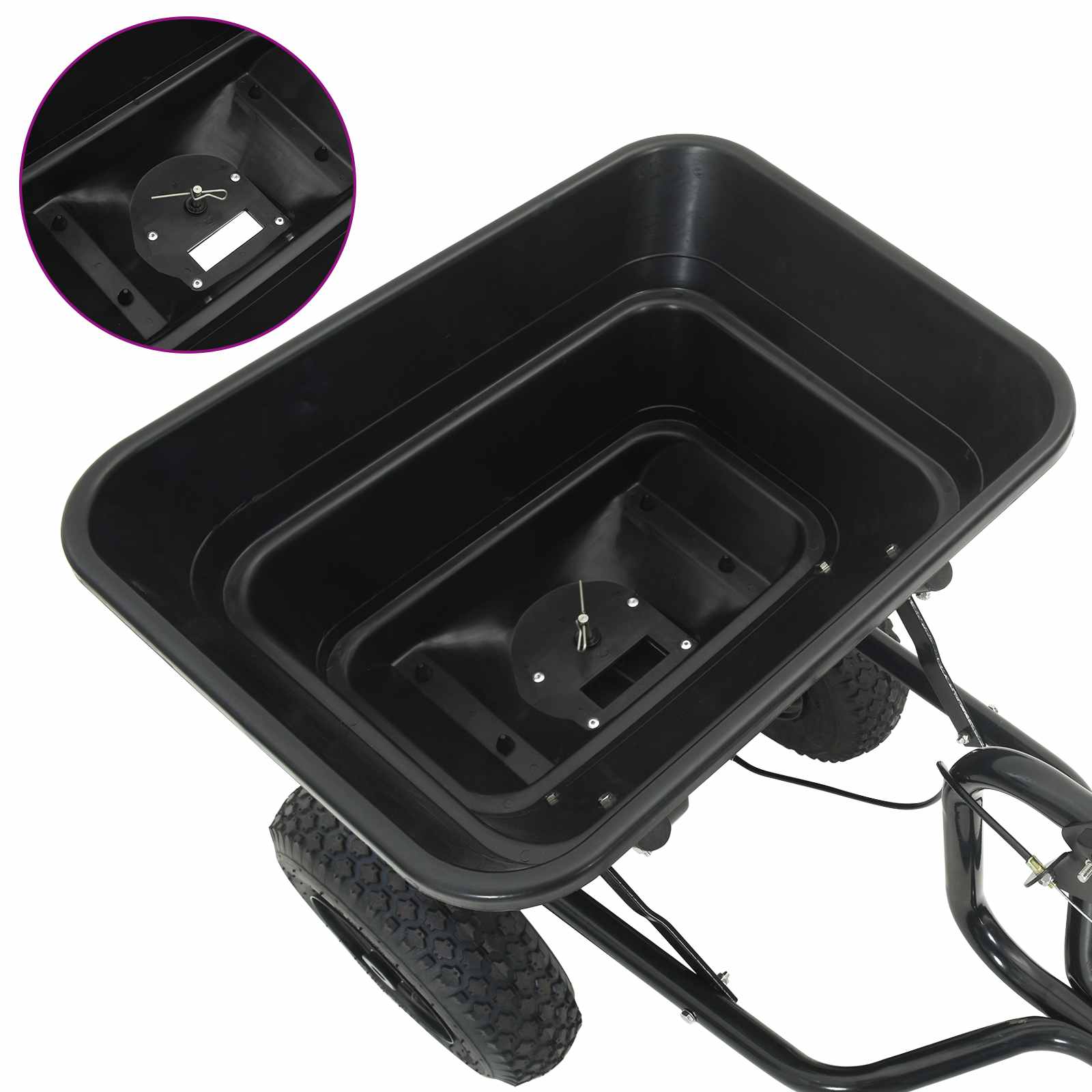 - Costruzione robusta: Realizzato in PVC e acciaio, pensato per resistere a un uso intenso e condizioni meteo dure, lo spargitore è una scelta che dura nel tempo per il tuo giardino.