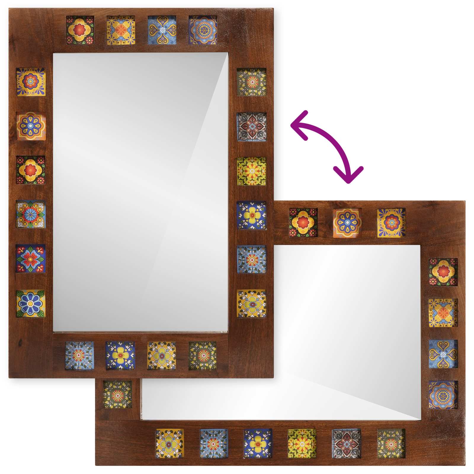 • Legno massello di mango: Questo specchio è fatto di legno massello di mango, che porta un tocco di bellezza naturale nel tuo bagno. È resistente e durevole, quindi non solo è bello ma anche fatto per durare.