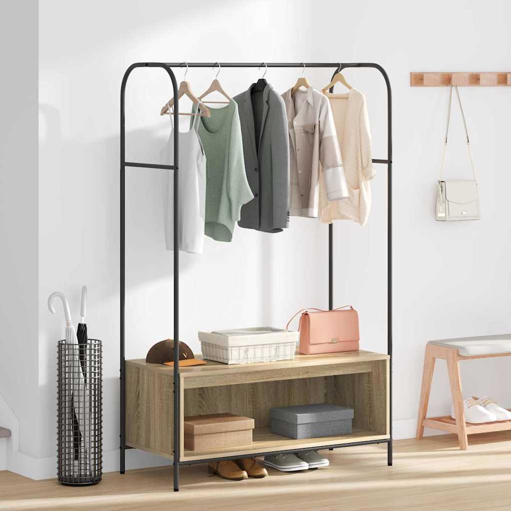 - Costruzione durevole Realizzato in legno ingegnerizzato e sostenuto da una robusta struttura in metallo, questo appendiabiti è fatto per durare. Il legno ingegnerizzato è leggero ma resistente, quindi non devi preoccuparti di eventuali deformazioni col tempo. La struttura in metallo assicura robustezza e stabilità, per tenere al sicuro i tuoi oggetti.
