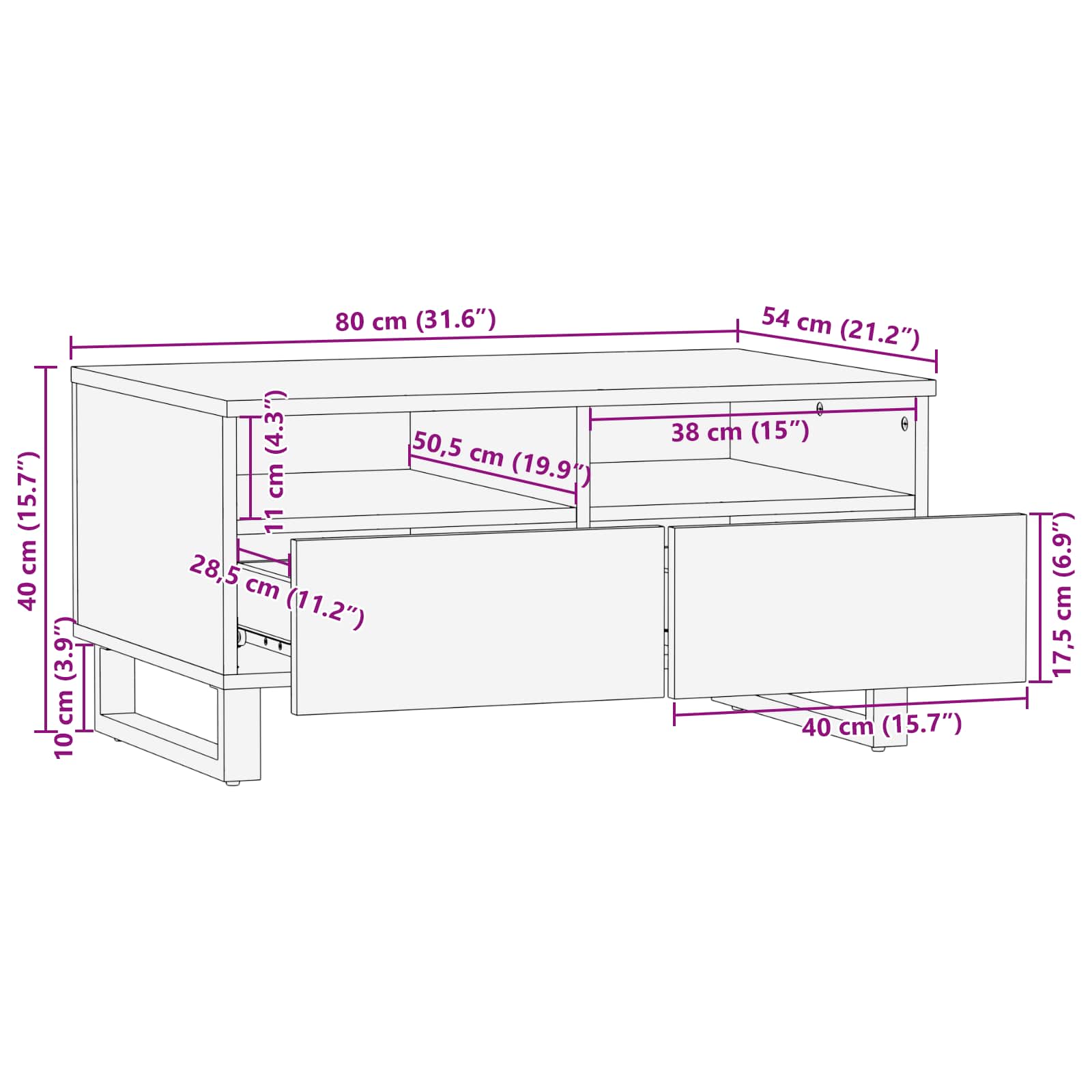• Dimensioni complessive: 80 x 54 x 40 cm (L x P x A)