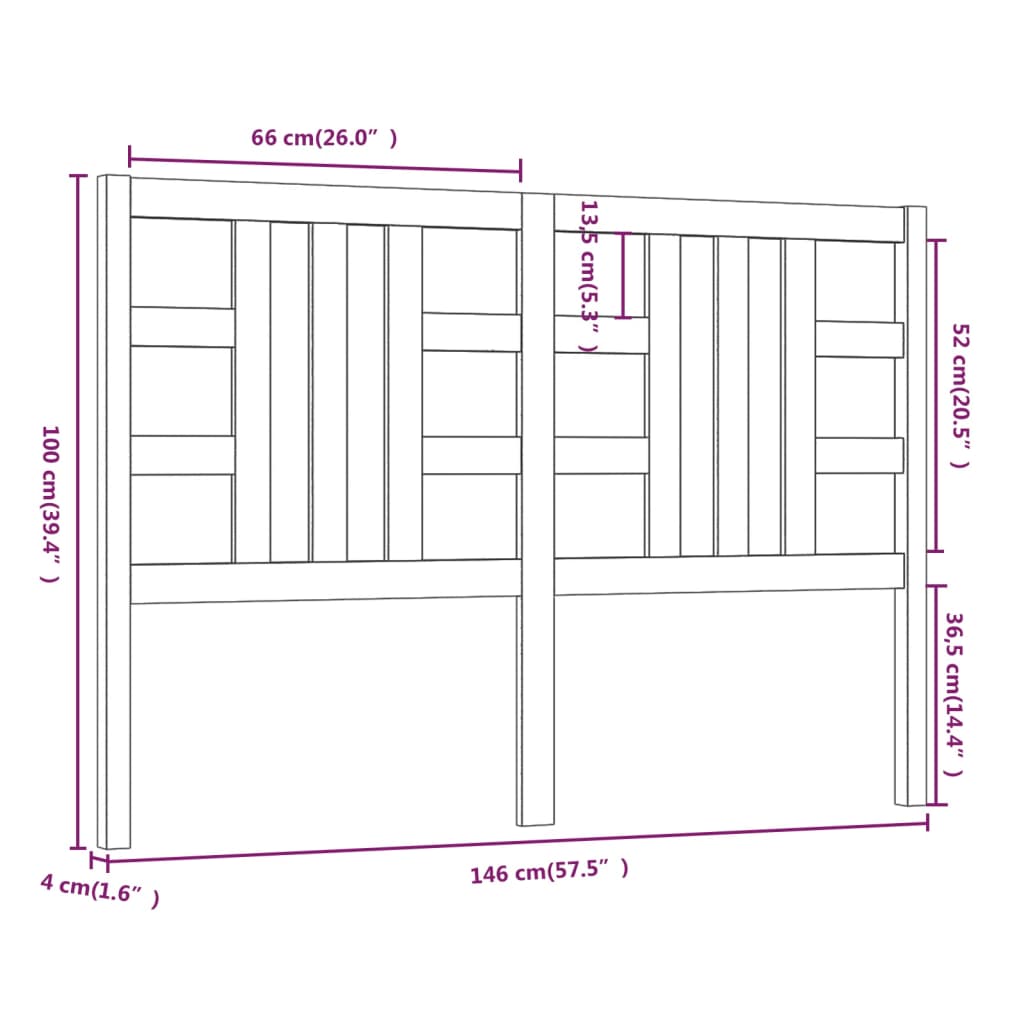 Testiera per Letto 146x4x100 cm in Legno Massello di Pino