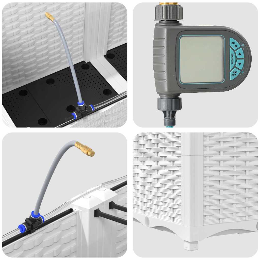 La Fioriera da Giardino con Irrigazione è la scelta perfetta per chi cerca un'aggiunta pratica e bella al proprio spazio esterno. Con un design moderno, si integra facilmente in qualsiasi giardino o terrazza. È pensata per essere semplice e funzionale, portando un tocco di eleganza nelle tue piante, sia che tu sia un giardiniere esperto o un principiante. Unisce stile e praticità per un ambiente ideale per il tuo giardinaggio.