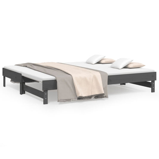 Dormeuse Estraibile Grigia 2x(80x200) cm Legno Massello di Pino