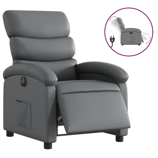 Poltrona Reclinabile Elettrica Grigia in Similpelle