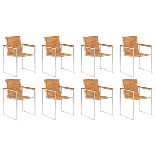 Sedie da Giardino 8 pz Legno Massello di Teak e Acciaio Inox