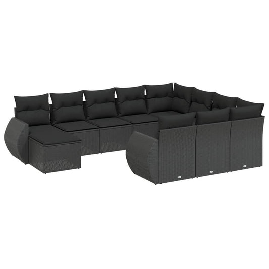 Set Divani da Giardino 11 pz con Cuscini in Polyrattan Nero