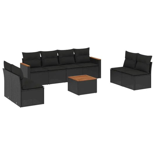 Set Divani da Giardino 9 pz con Cuscini Nero in Polyrattan