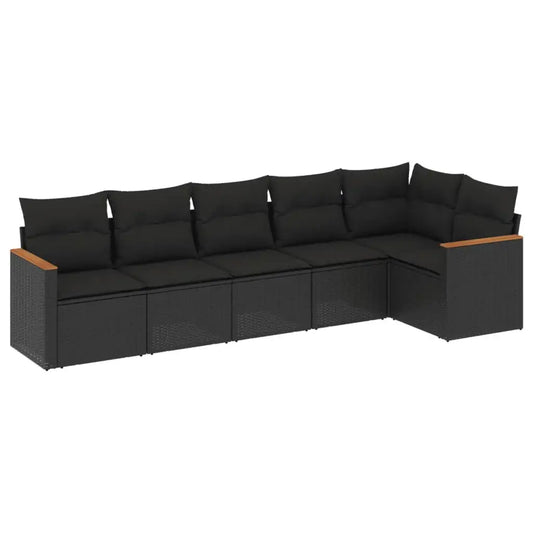Set Divano da Giardino 6 pz con Cuscini Nero in Polyrattan