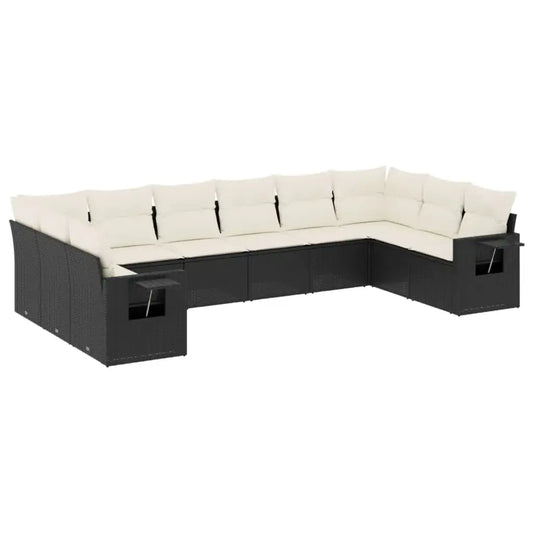 Set Divani da Giardino 10pz con Cuscini in Polyrattan Nero