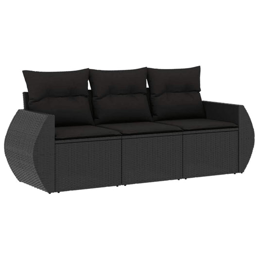 Set Divani da Giardino 3 pz con Cuscini in Polyrattan Nero