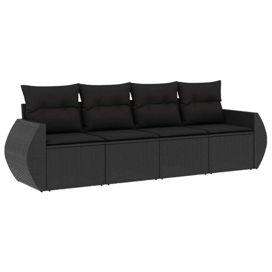 Set Divani da Giardino 4 pz con Cuscini Nero in Polyrattan