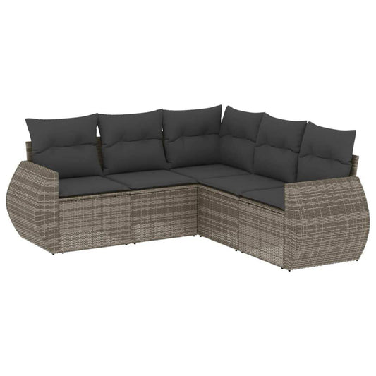 Set Divano da Giardino 5 pz con Cuscini Grigio in Polyrattan
