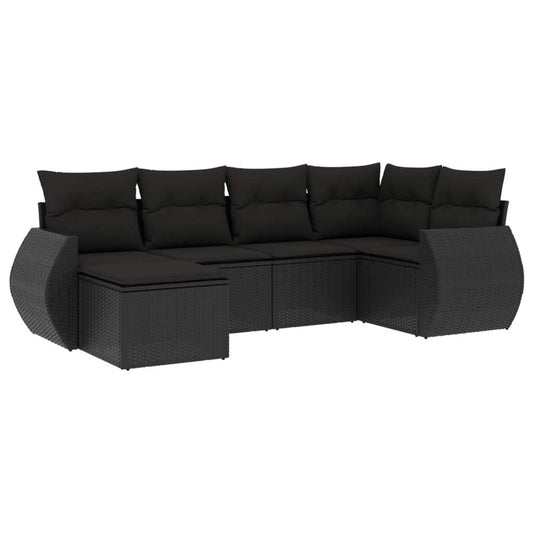 Set Divano da Giardino 6 pz con Cuscini Nero in Polyrattan