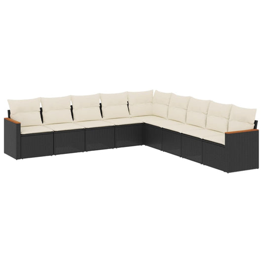 Set Divani da Giardino 9 pz con Cuscini Nero in Polyrattan