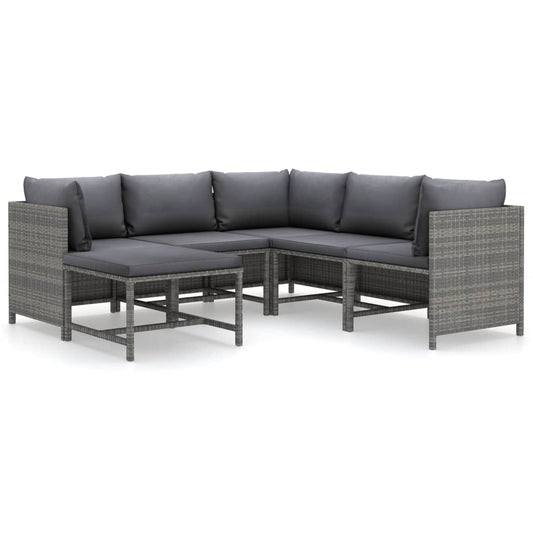 Set Divani da Giardino 6 pz con Cuscini in Polyrattan Grigio