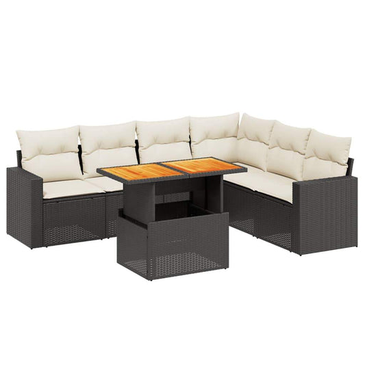 Set Divani da Giardino con Cuscini 7pz Nero Polyrattan