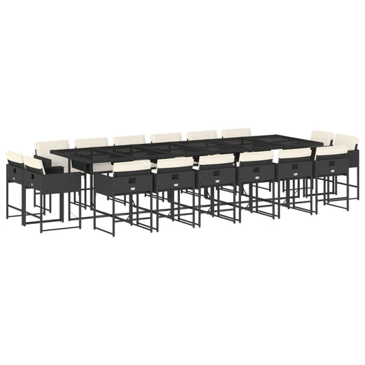 Set da Pranzo da Giardino 17 pz con Cuscini Nero in Polyrattan