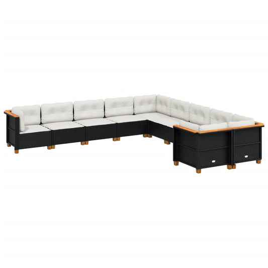 Set Divani da Giardino 10pz con Cuscini in Polyrattan Nero