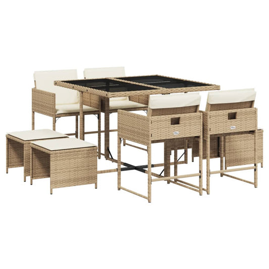 Set Pranzo da Giardino 9 pz con Cuscini Beige Misto Polyrattan