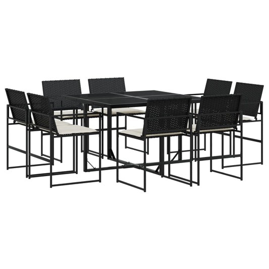 Set da Pranzo da Giardino 9 pz con Cuscini Nero in Polyrattan